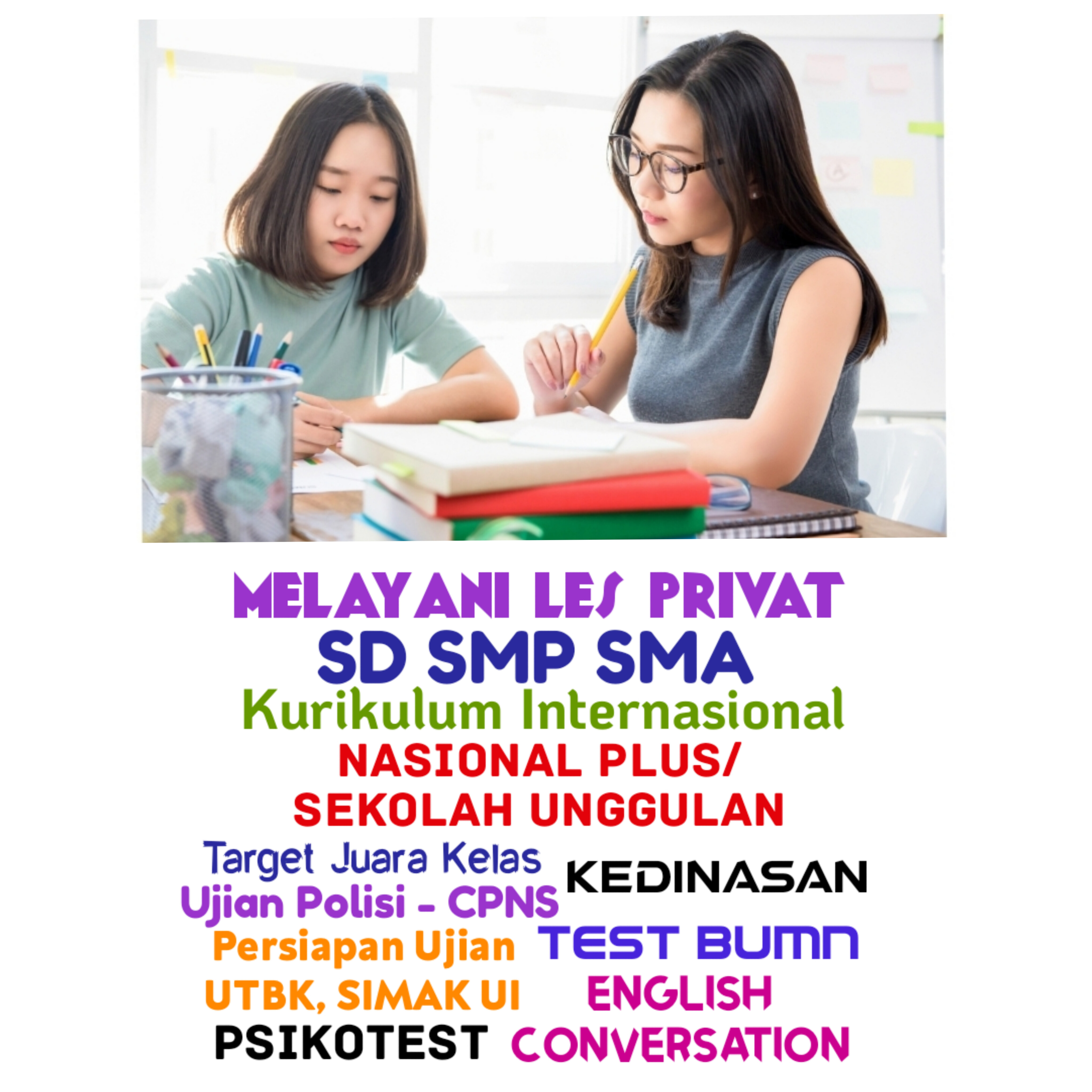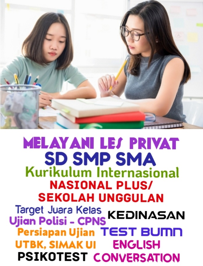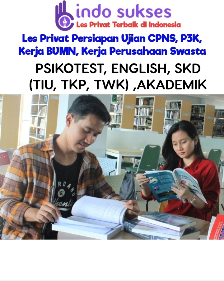 Ribuan Siswa kami sudah Berhasil LULUS Meraih karir impian terbaiknya, Sekarang Giliran kamu..!!! Team Pengajar kami sangat Pengalaman mengajar Belasan Tahun dibidang masing masing. Fokus ngajarin Pembahasan soal yang sering muncul dan diPrediksi kemungkinan besar akan keluar saat ujian karir nanti. Untuk Persiapan Ujian Kerja BUMN, CPNS /ASN, BINTARA POLISI / AKPOL, TNI/ AKMIL, KEDINASAN KEMENTERIAN STAN, IPDN, STMKG, STIS, STTD, STIN, POLTEKIP, POLTEKIM, PERUSAHAAN SWASTA, dll Pengajar datang ke Rumah Anda, Cafe kondusif sesuai tempat kesepakatan, bahkan melayani BELAJAR ONLINE dari Seluruh Indonesia